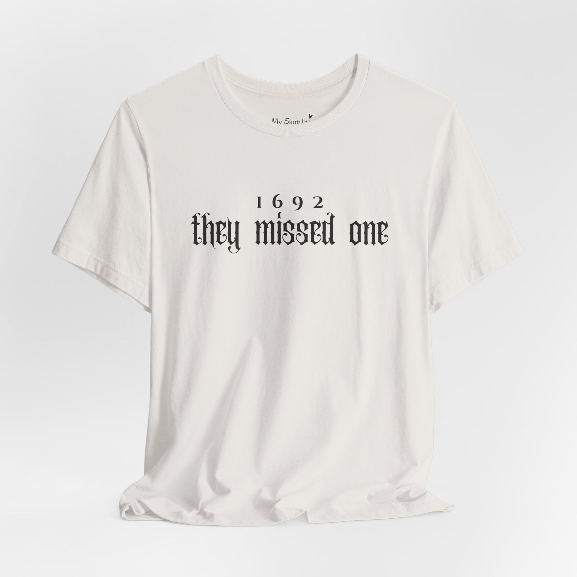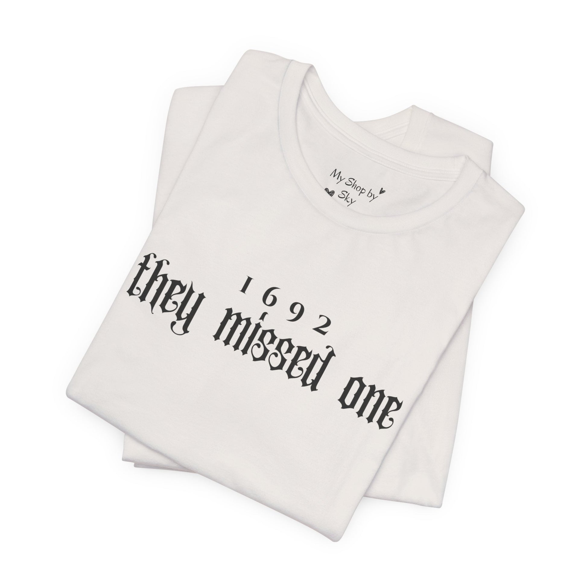 This 1692 They Missed One T-Shirt exudes a vintage and mysterious vibe, perfect for history enthusiasts and those interested in the Salem witch trials era. It can be a great conversation starter and a unique addition to your wardrobe. Ideal for wearing during Halloween, historical reenactments, and themed parties.
