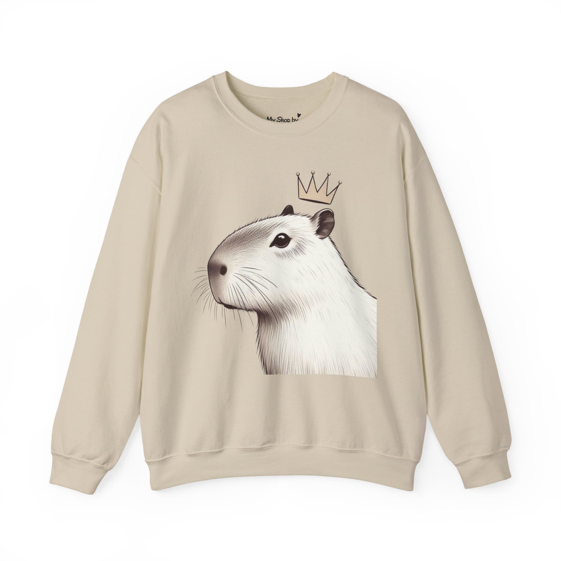 This capybara crown sweatshirt exudes a whimsical and charming vibe, perfect for those who love quirky and unique designs. It is great for casual wear and adds a touch of fun to any outfit. Ideal for animal lovers or those looking for a standout piece for their wardrobe. Perfect for gifting on birthdays, holidays, or just because.