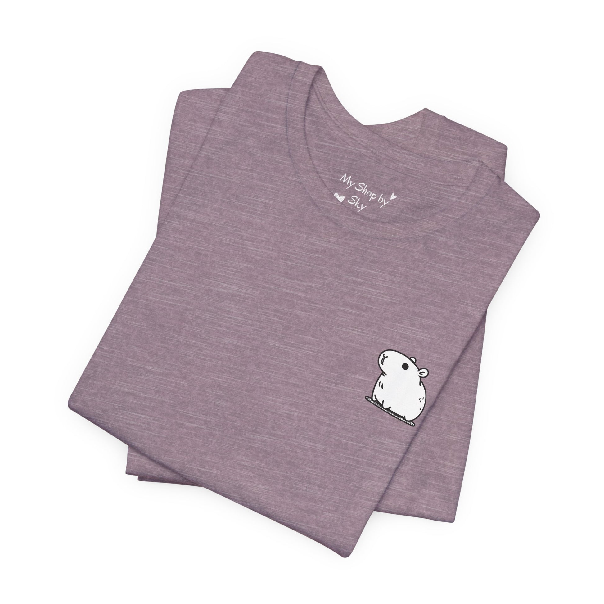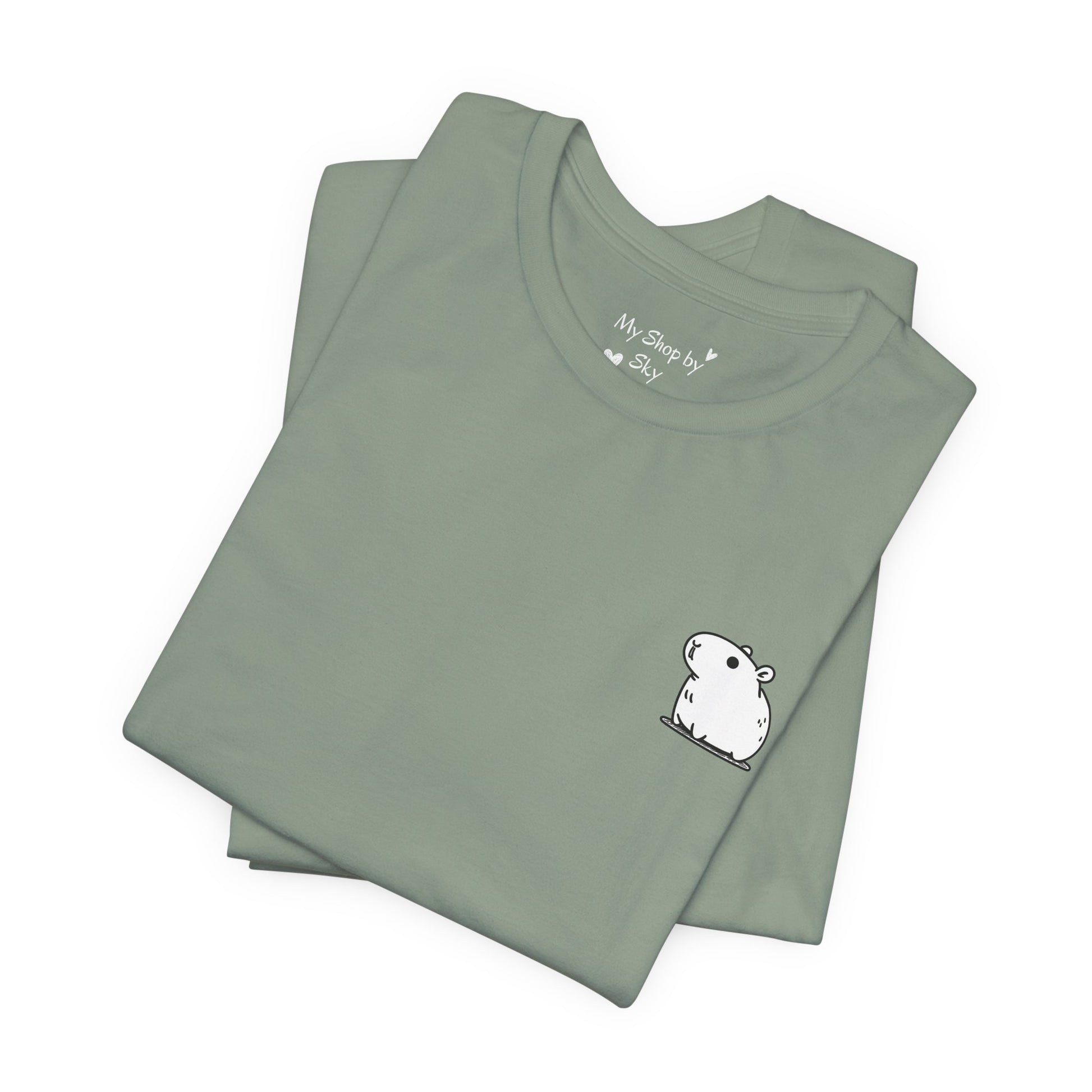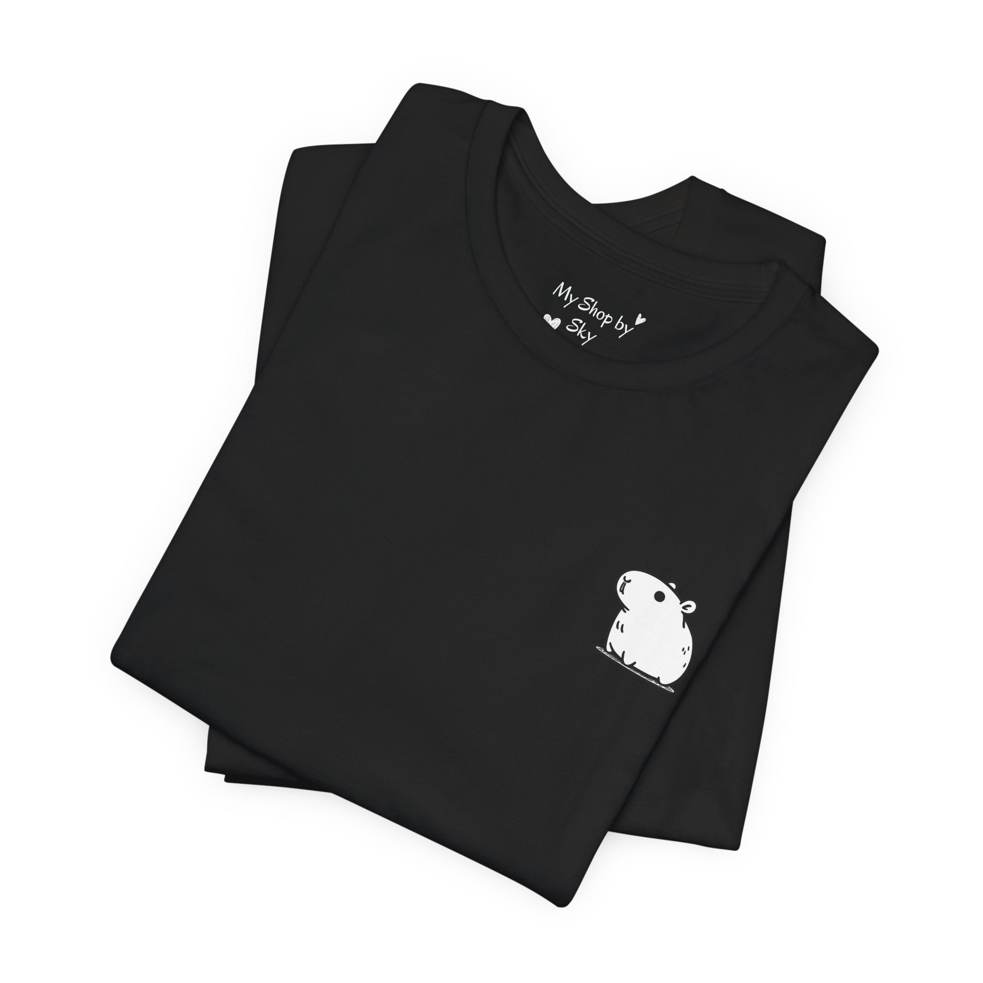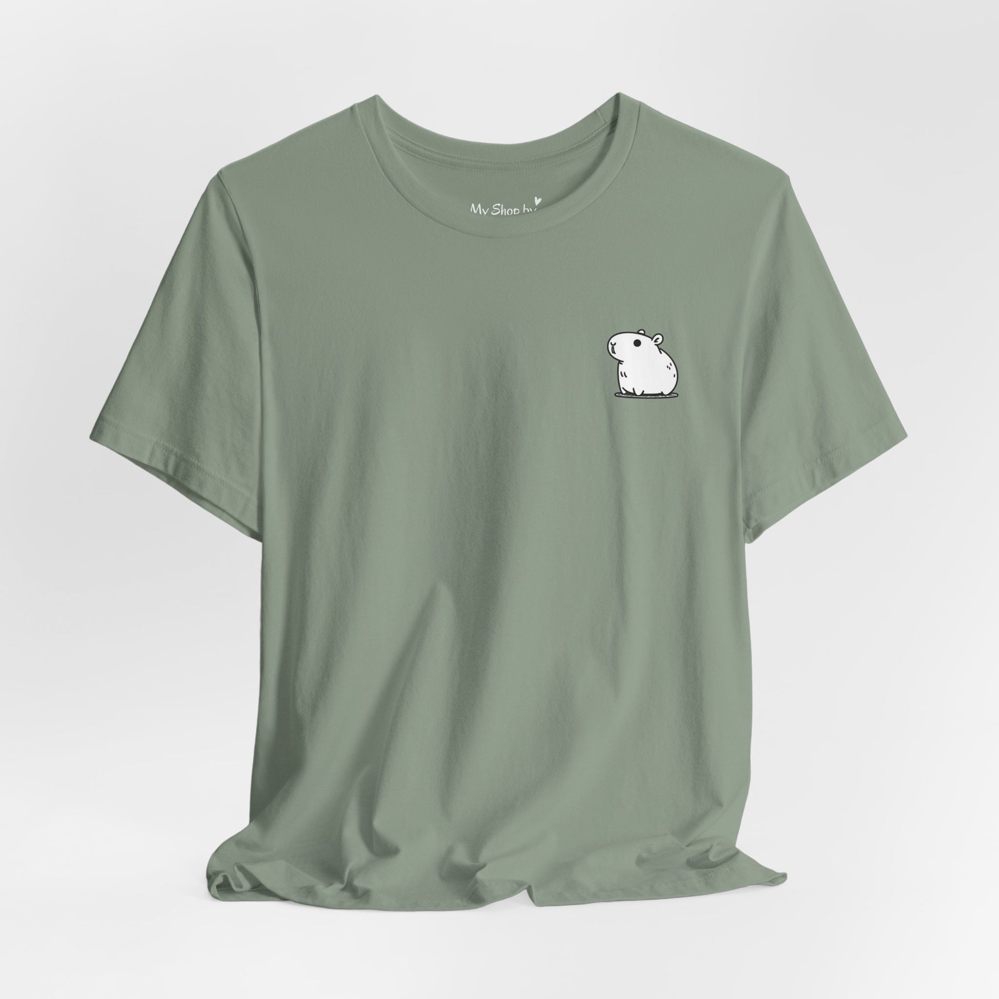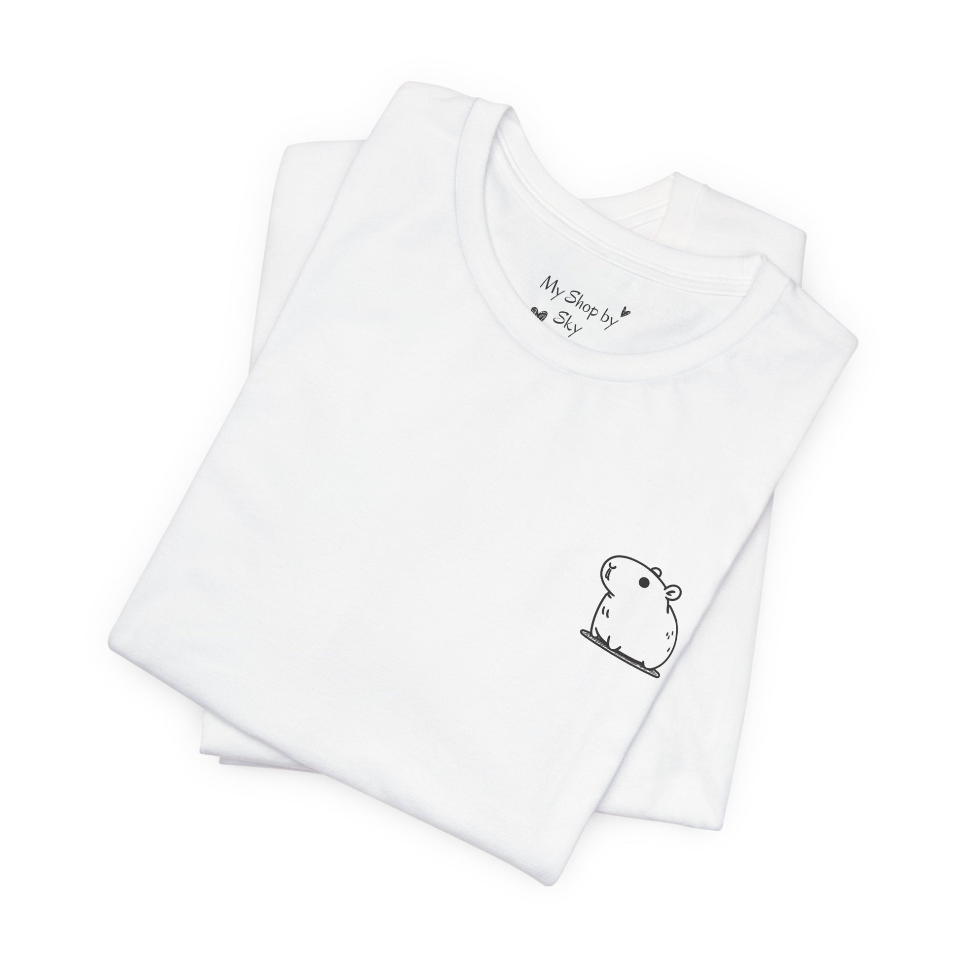 A trendy capybara T-Shirt that exudes a fun and quirky vibe, perfect for casual wear or lounging around. Ideal for animal lovers and those looking for unique, eye-catching apparel. Great for gifting during birthdays or as a cute surprise for a friend.