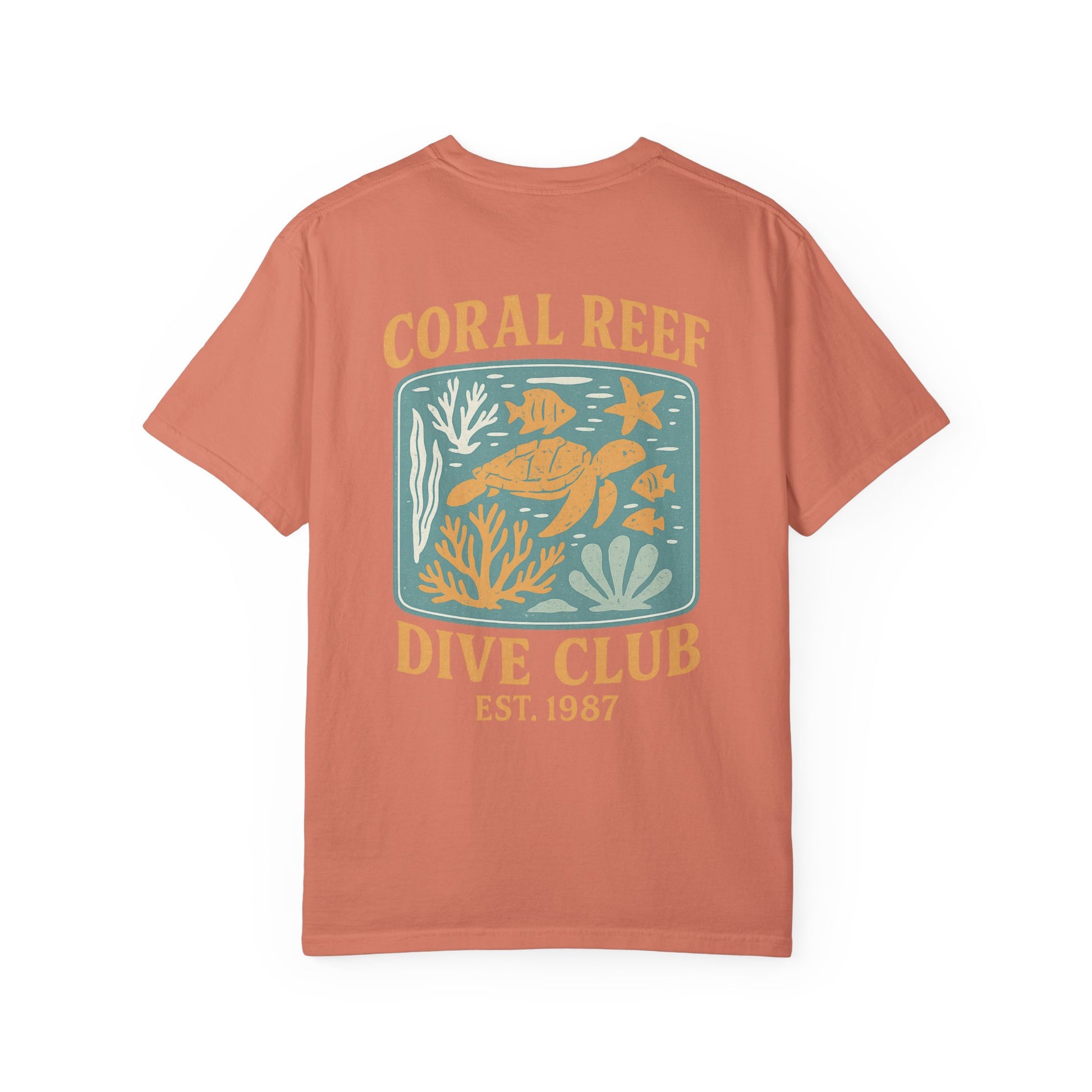This coral reef T-shirt exudes a beachy, tropical vibe perfect for summer days and vacation getaways. Comfortable and stylish, it is ideal for ocean lovers and nature enthusiasts. Great for casual outings, beach trips, and marine-themed events.