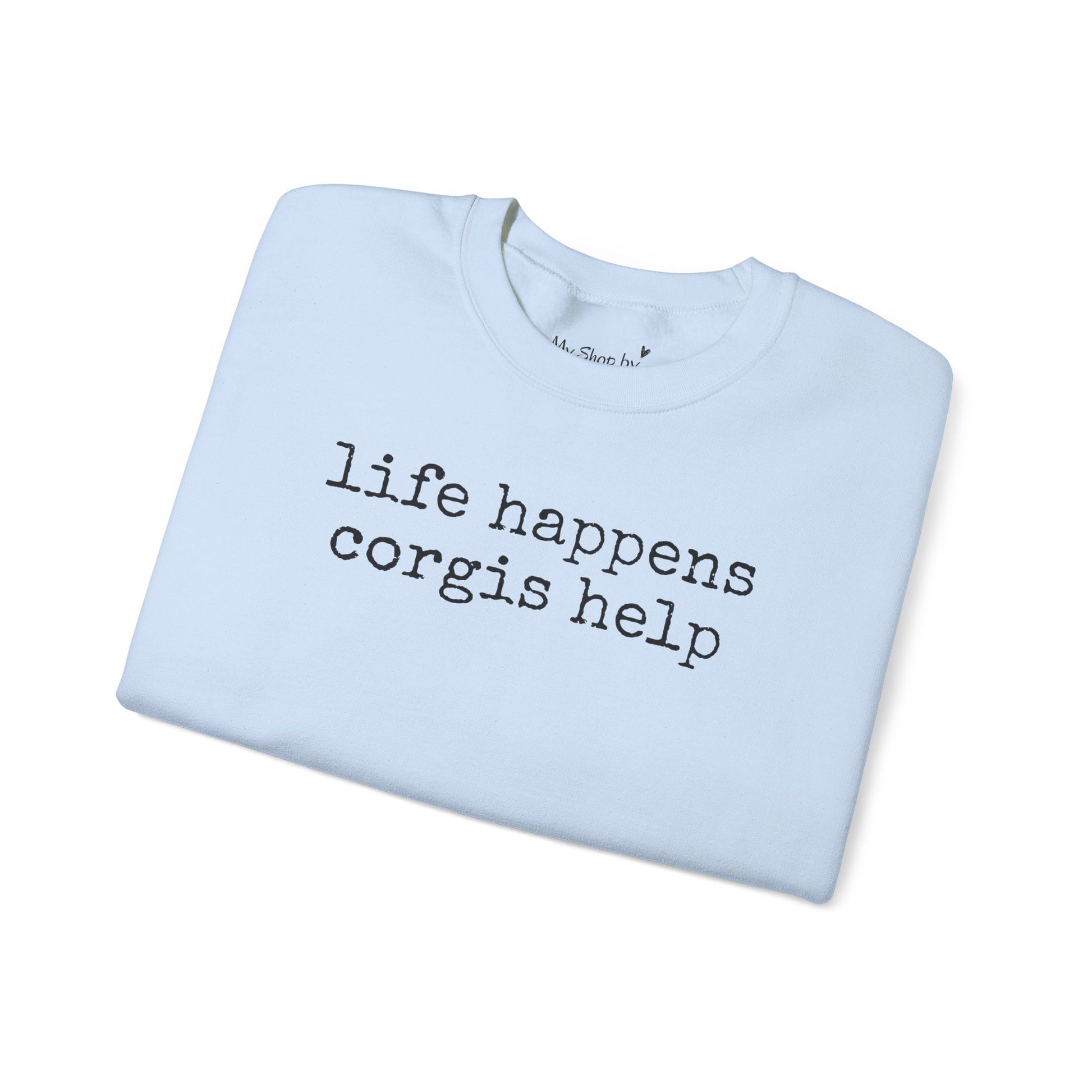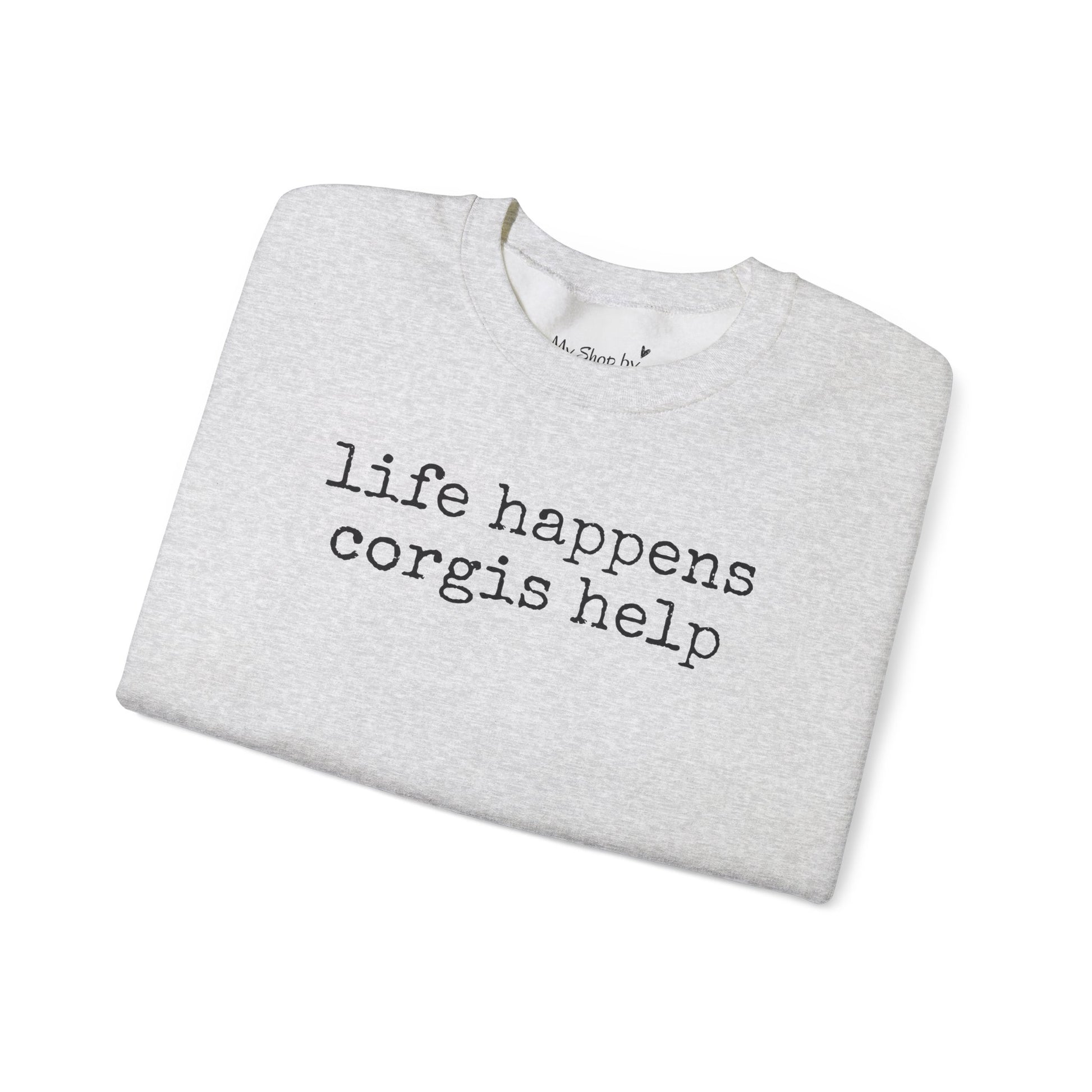 Stay cozy and stylish with this life happens corgi sweatshirt. Perfect for adults who love cute and comfy apparel. Great for casual wear, lounging at home, or running errands. Ideal for dog lovers and corgi enthusiasts. Suitable for birthdays, holidays, or any casual occasion.