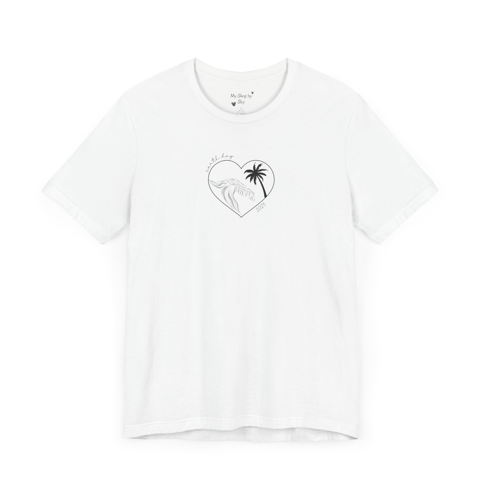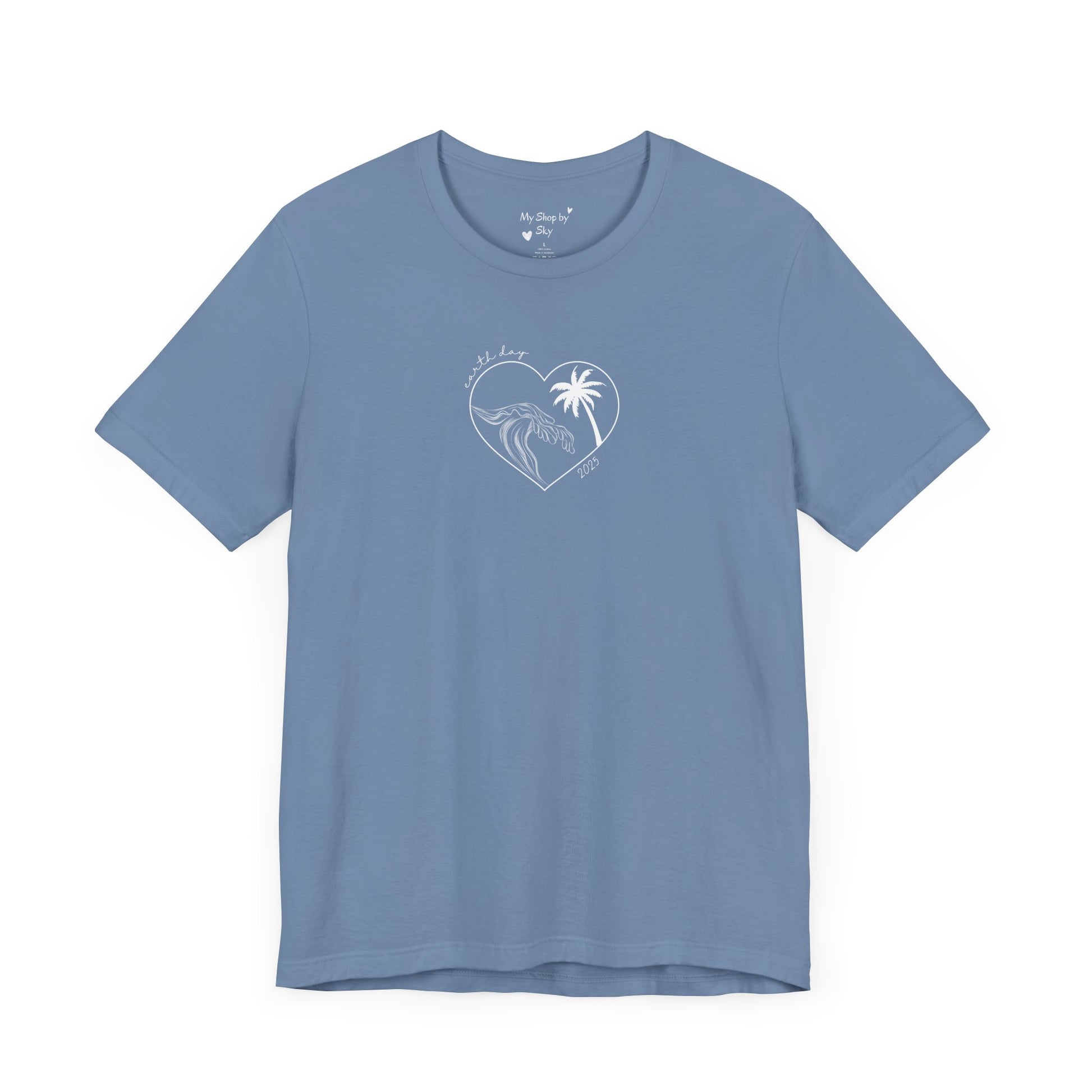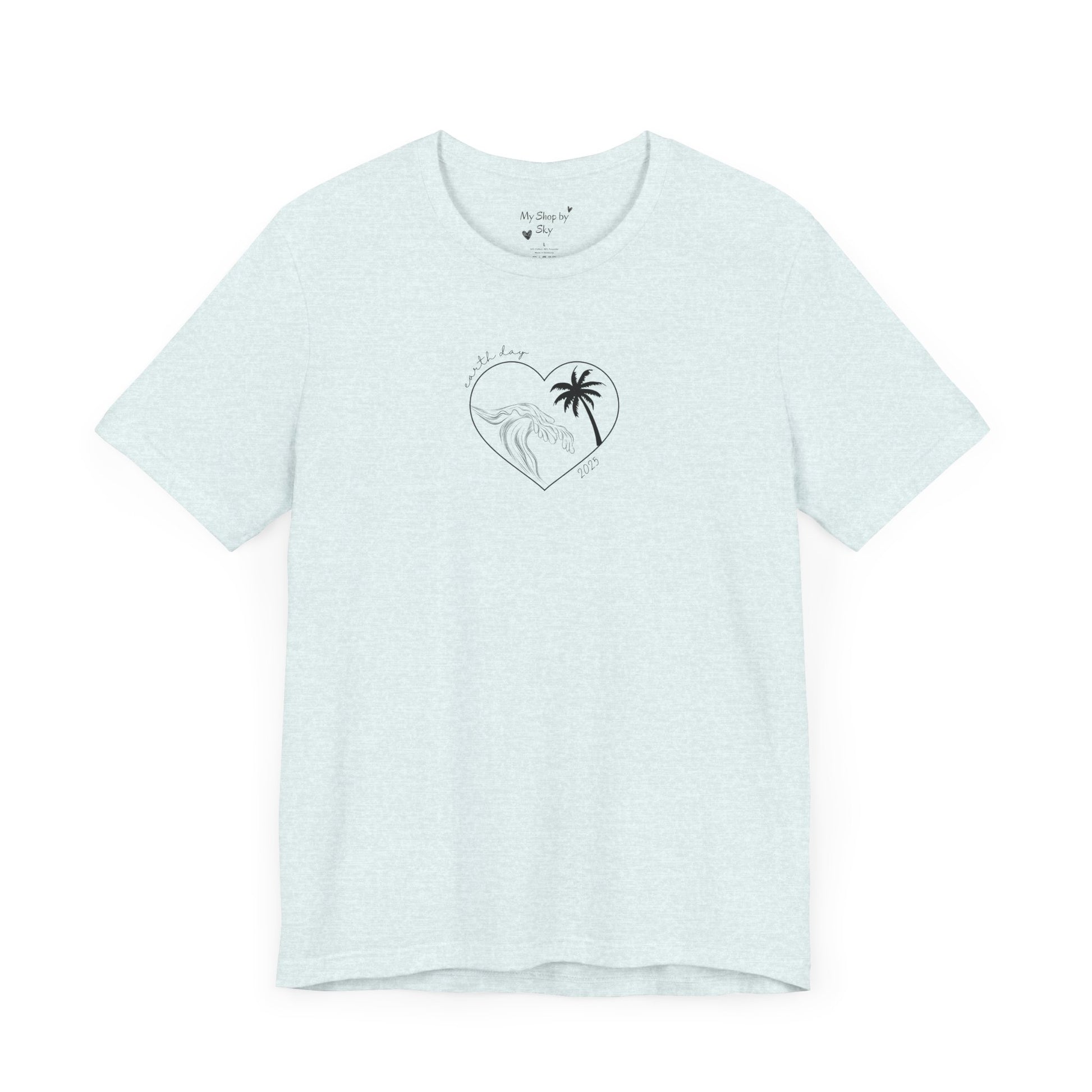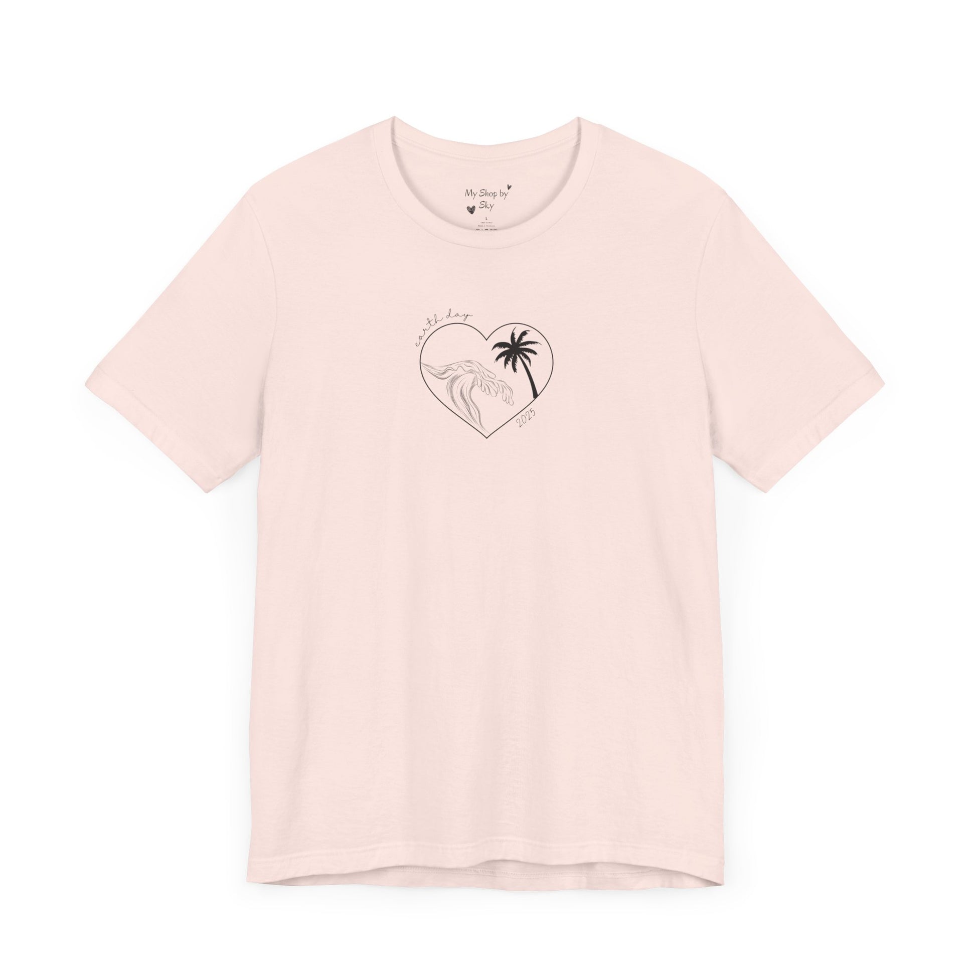 Celebrate Earth Day in style with this short sleeve tee featuring a heart design with a wave and palm tree. The relaxed fit and lightweight fabric make it perfect for everyday wear, and the vibrant colors add a touch of fun to any outfit. Ideal for adults looking to show their love for the planet on Earth Day.