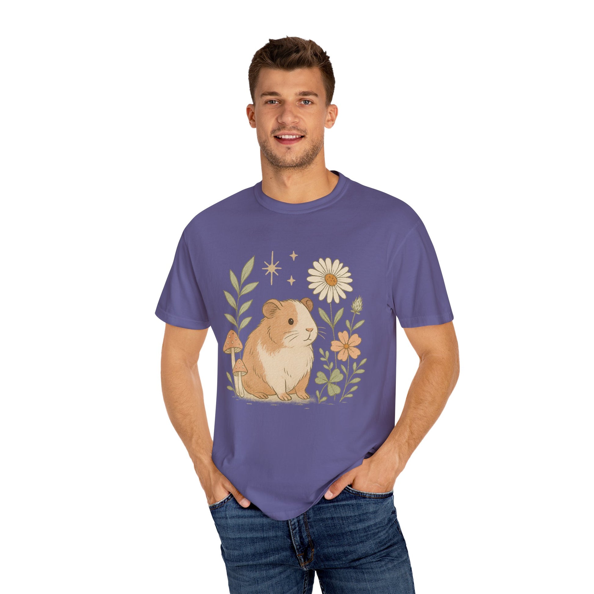 This guinea pig shirt is perfect for animal lovers and those who enjoy a cute and playful design. With its relaxed fit and comfortable fabric, this t-shirt is great for casual wear or lounging around. It makes a great gift for guinea pig enthusiasts or anyone who loves cute animal-themed clothing. Ideal for birthdays, holidays, or just because.