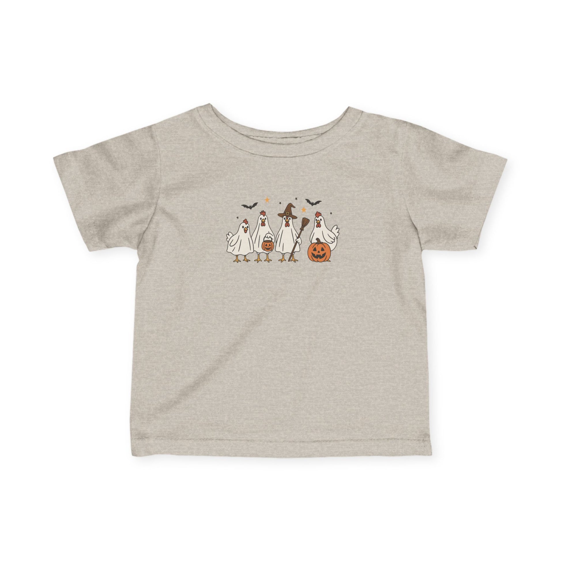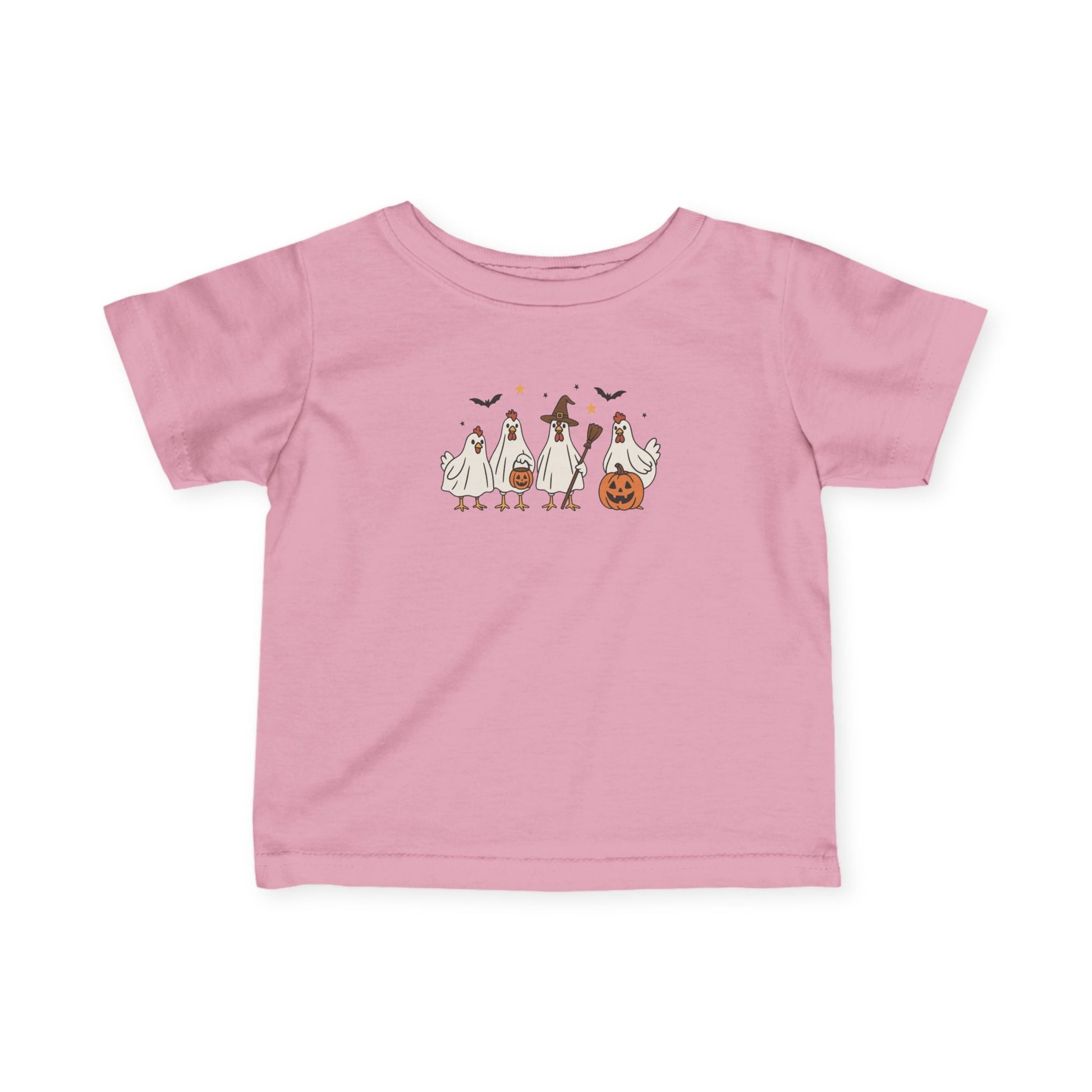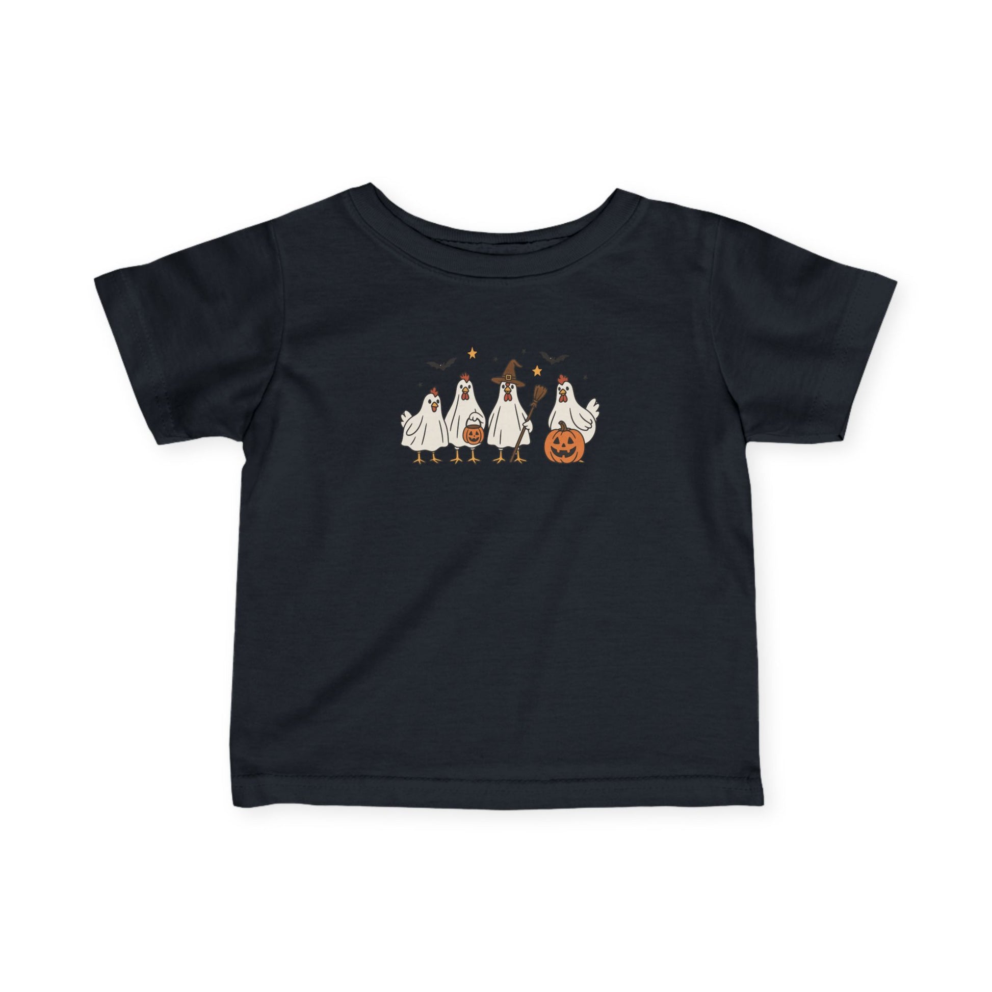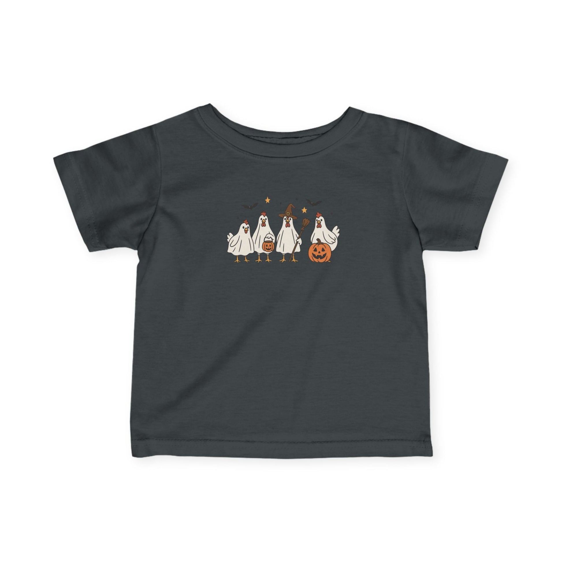 This infant tee features a cute design of a chicken perfect for Halloween. The light fabric and classic fit provide comfort for your little one while they celebrate the holiday. Ideal for parents looking for a festive outfit for their baby during the spooky season.