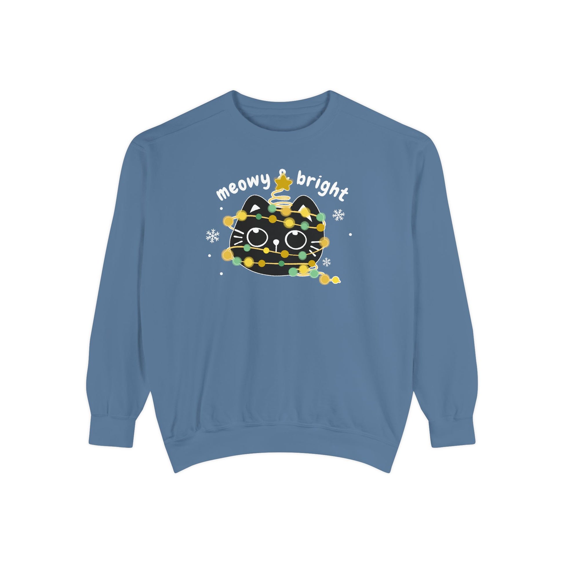Meowy and bright sweatshirt that exudes a playful and festive vibe, perfect for cat lovers and those who enjoy whimsical designs. This sweatshirt is ideal for the holiday season, Christmas celebrations, and cat-themed events.