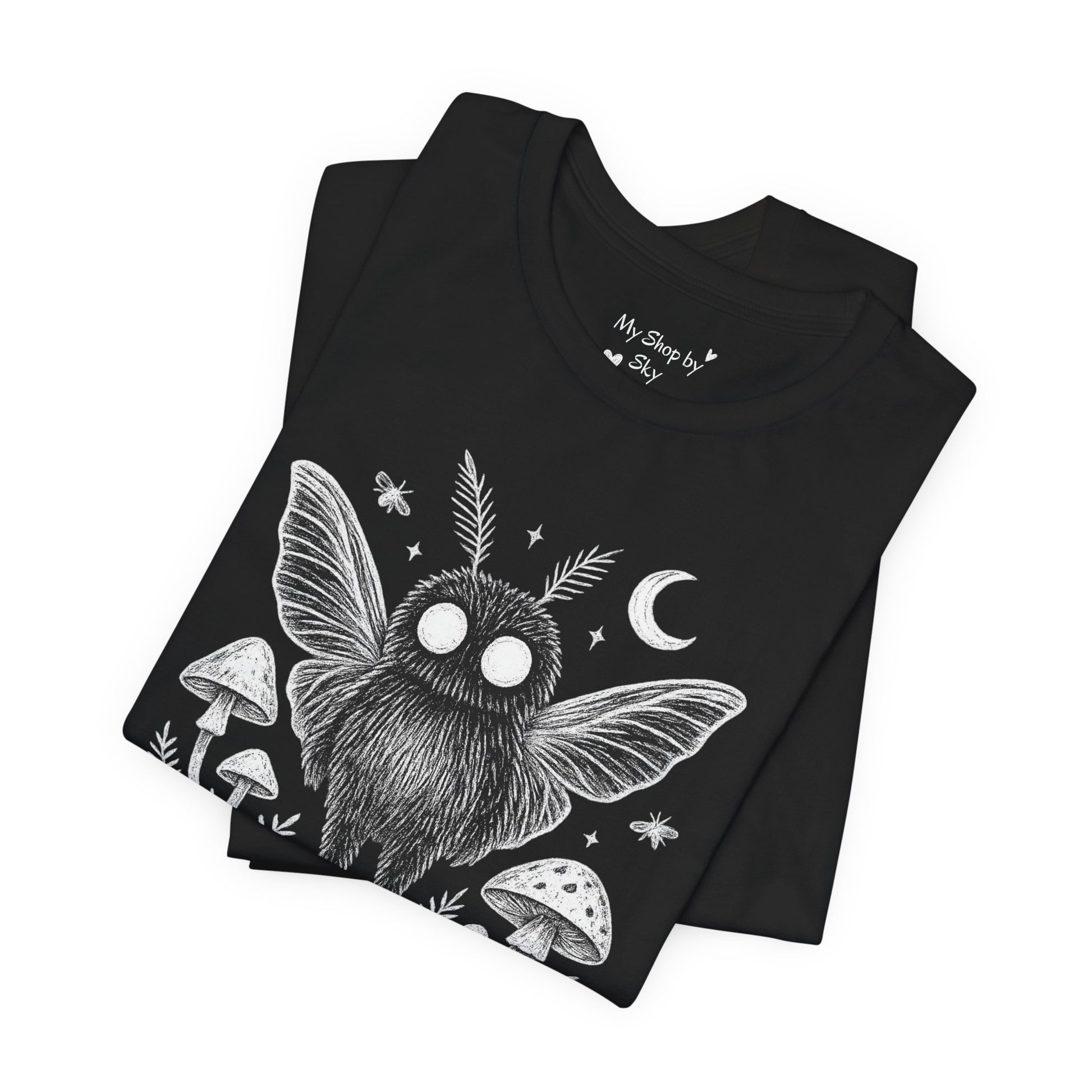 This lightweight tee carries a hush of roadside legend—soft cotton that sits close without clinging, printed with a bold, uncanny Mothman motif that sparks curiosity and quiet smiles. Wear it on late-night drives, at small-town gatherings, or when you want your wardrobe to hint at the strange and beautiful. The breathable fabric and retail cut make it easy to layer under a flannel or wear alone while you swap stories by the car hood. It feels lived-in from the first wear and holds its shape so the artwork stays sharp. For people who love cryptid lore, oddball Americana, and nights that feel a little electric, this shirt fits right into that story.