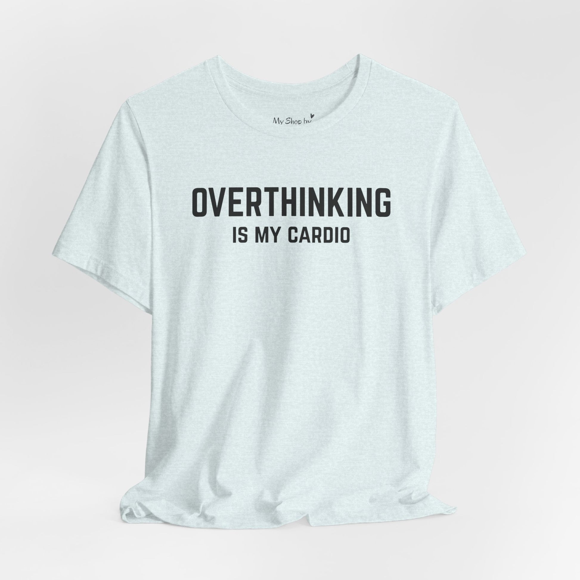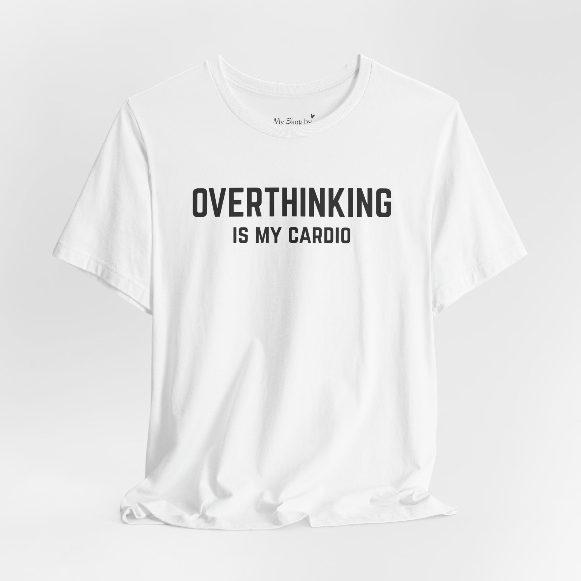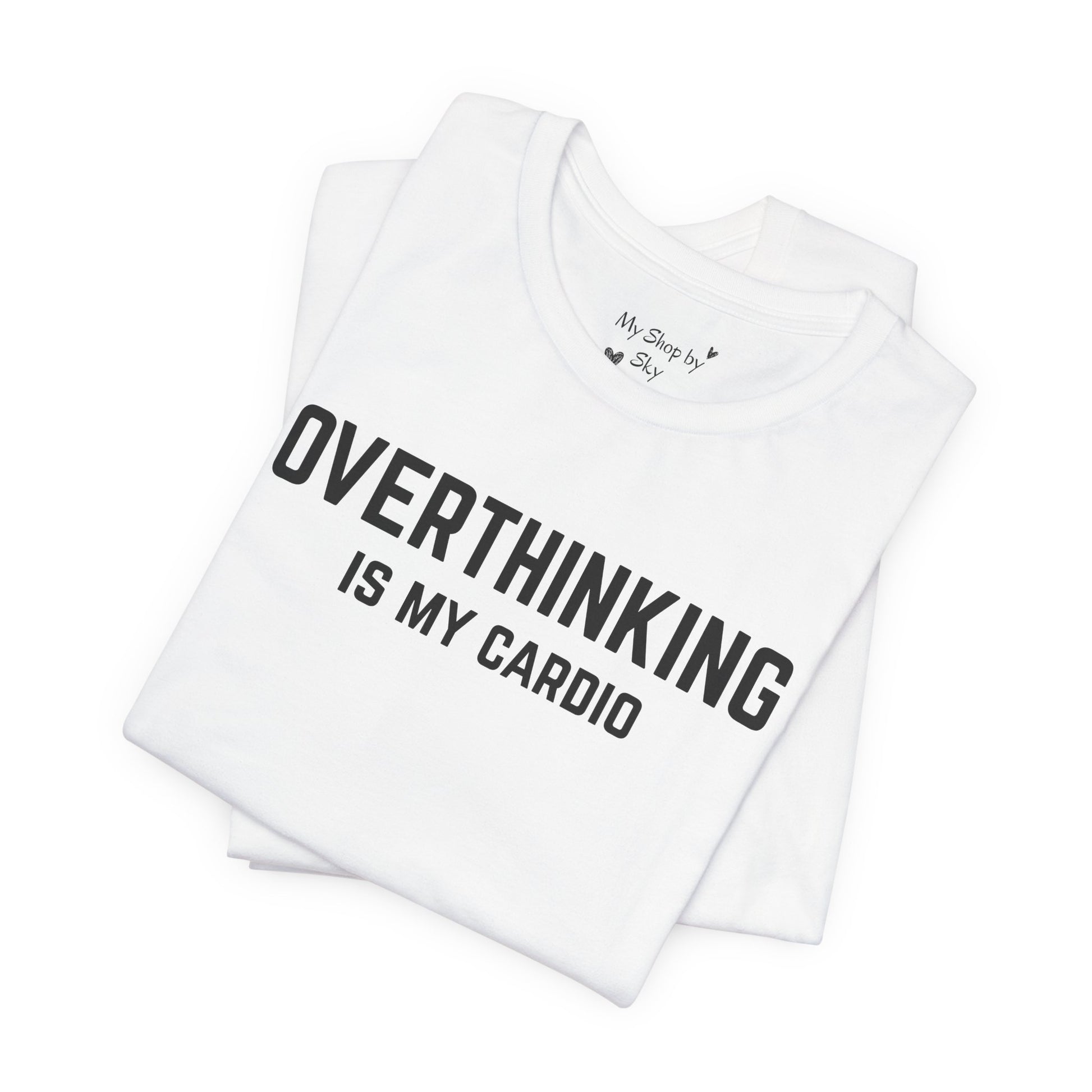 Stay comfortable and stylish with this unisex jersey short sleeve tee featuring the quirky phrase 'overthinking is my cardio.' Perfect for those who love a good laugh and enjoy a casual, relaxed look. Ideal for everyday wear, lounging at home, or running errands. Great for individuals who appreciate humor and wit in their wardrobe choices. Perfect for gifting during birthdays, holidays, or any occasion when you want to bring a smile to someone's face.