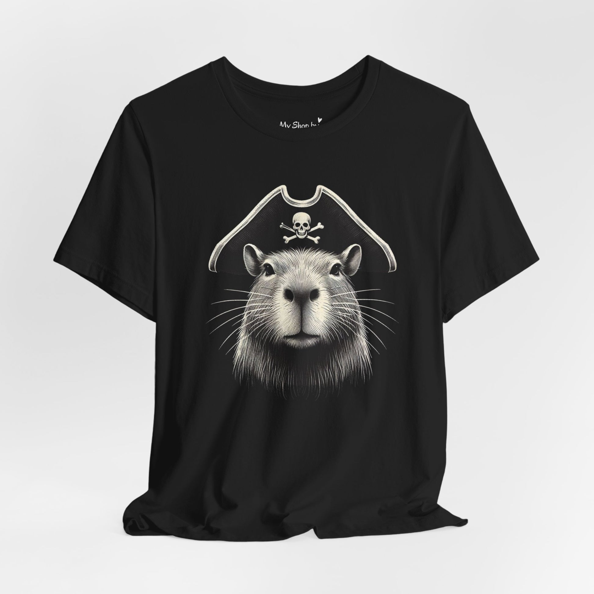 This pirate capybara T-Shirt exudes a fun and quirky vibe, perfect for those who appreciate unique and whimsical designs. It's a great addition to any casual wardrobe and can be worn to add a touch of personality to everyday outfits. Ideal for animal lovers and fans of pirate-themed apparel, this shirt is great for birthdays, costume parties, or just for adding a bit of laughter to your day.