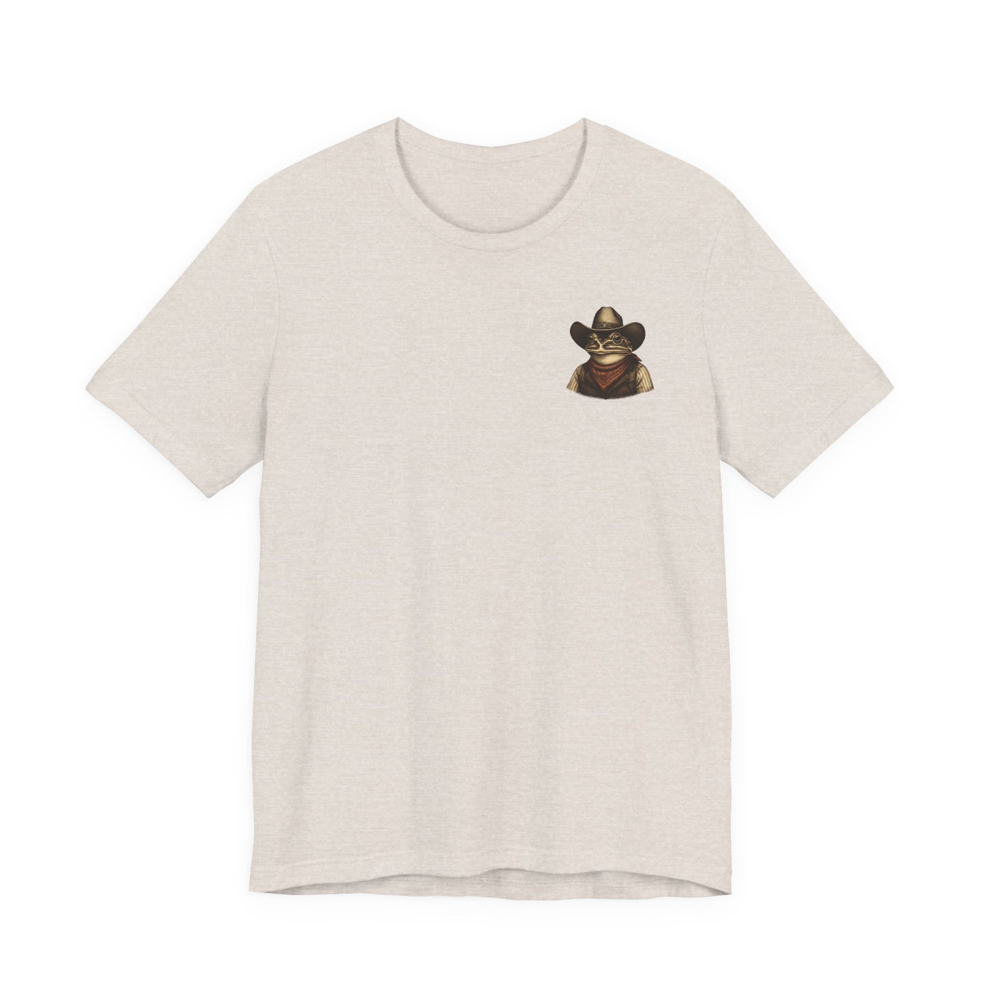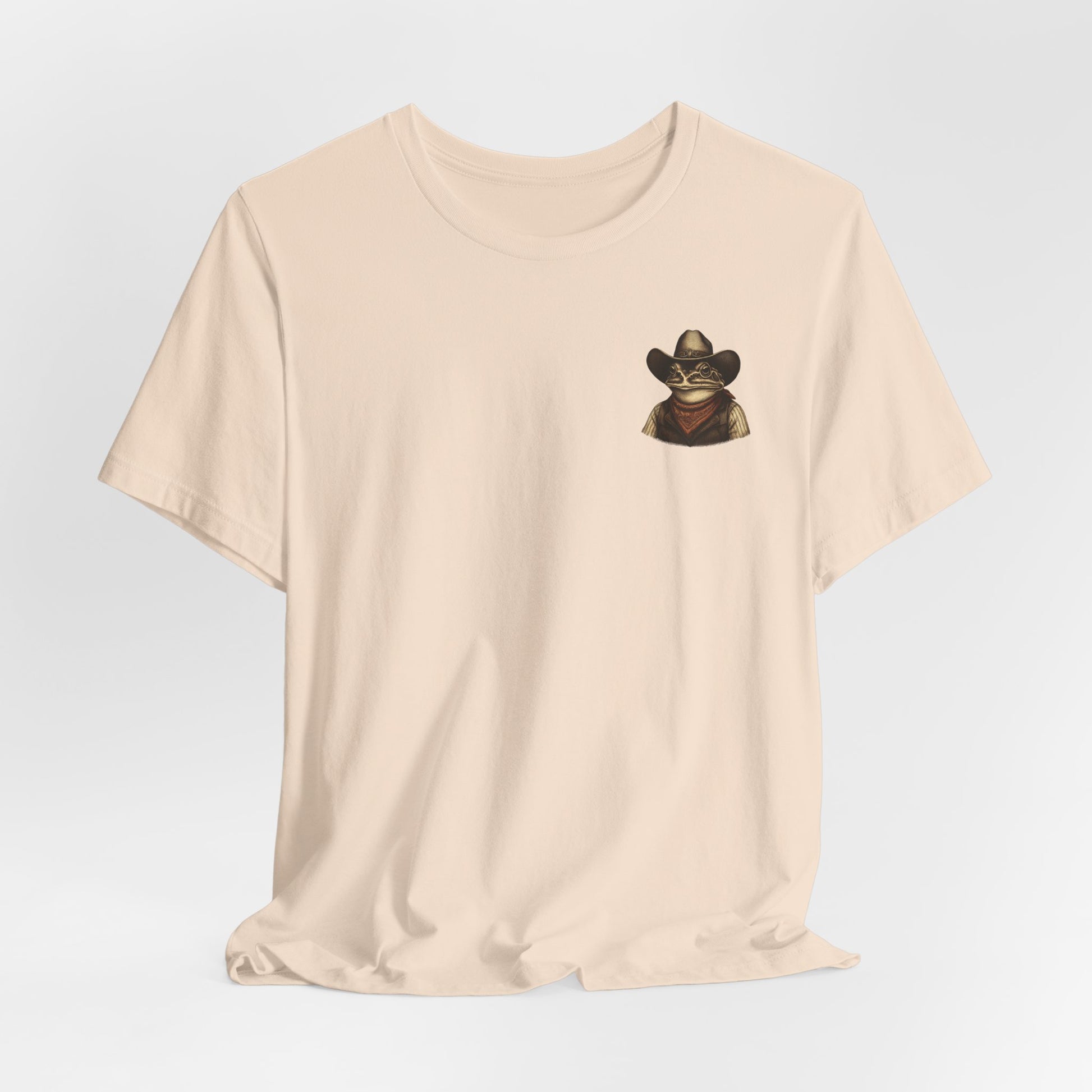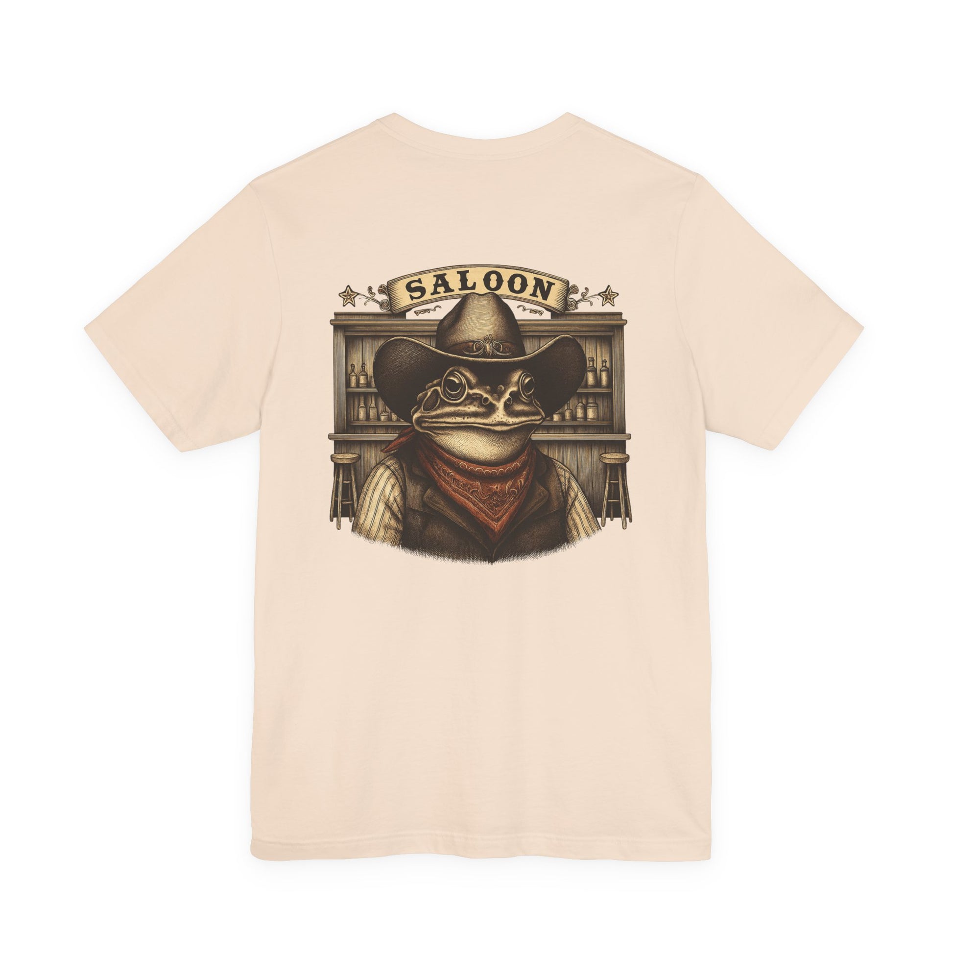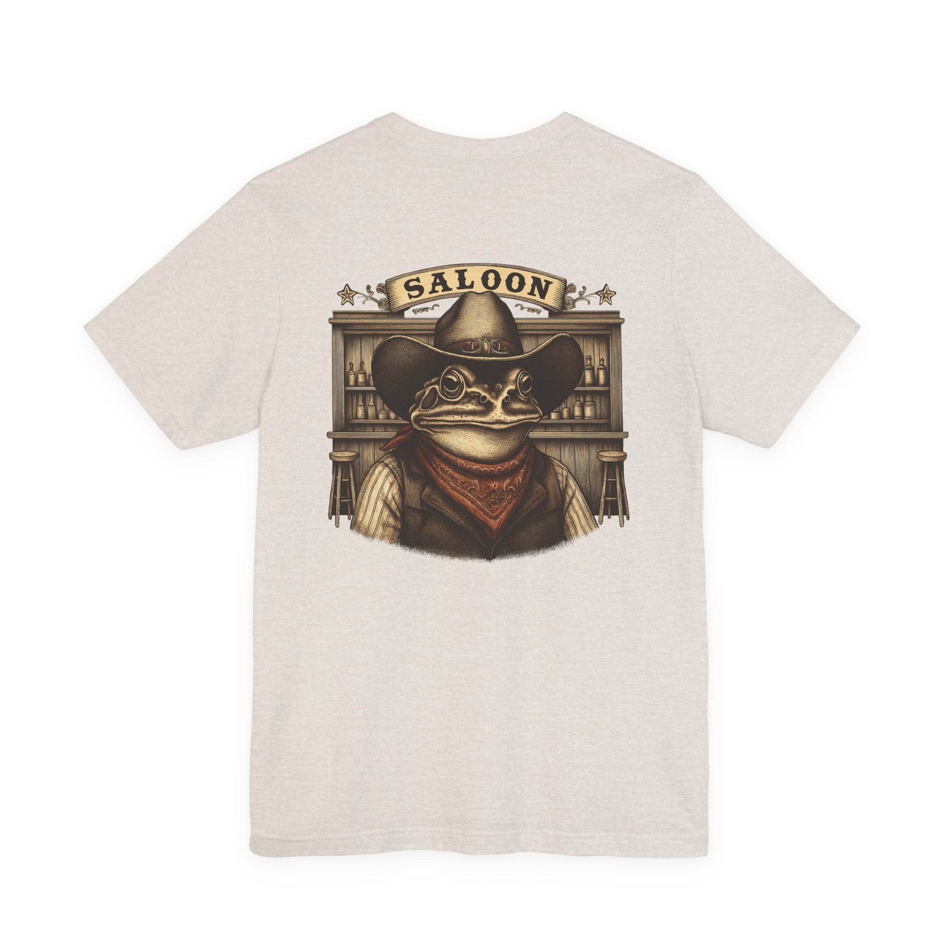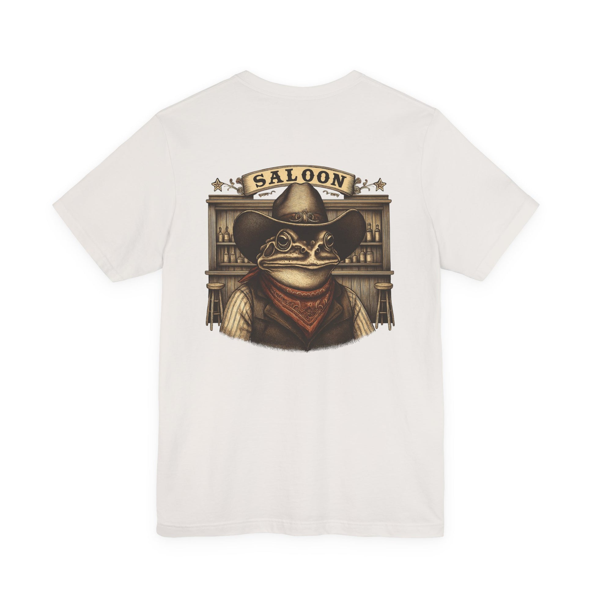 This saloon frog T-shirt exudes a whimsical and playful vibe, perfect for those who appreciate quirky and fun fashion. It is a great addition to a casual wardrobe and can be worn on various occasions, including relaxed hangouts and casual outings. Ideal for those who enjoy unique and eye-catching designs.