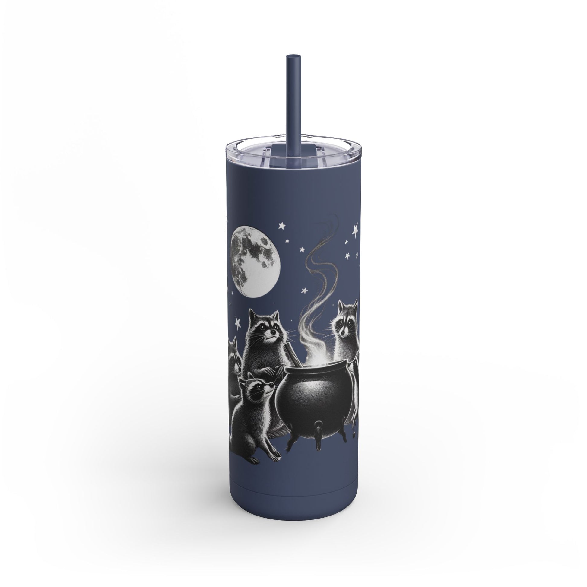 Skinny Tumbler - Cauldron Night Raccoon Design, 20oz